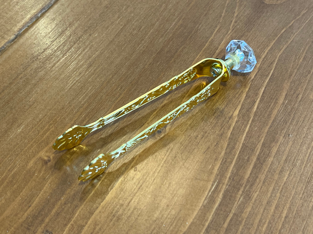 Loading... Please wait...Floral engraved brass tongs with a faux gold coating for holding charcoal briquettes during the lighting process. Also works for picking up incense pellets and placing them on the charcoal.