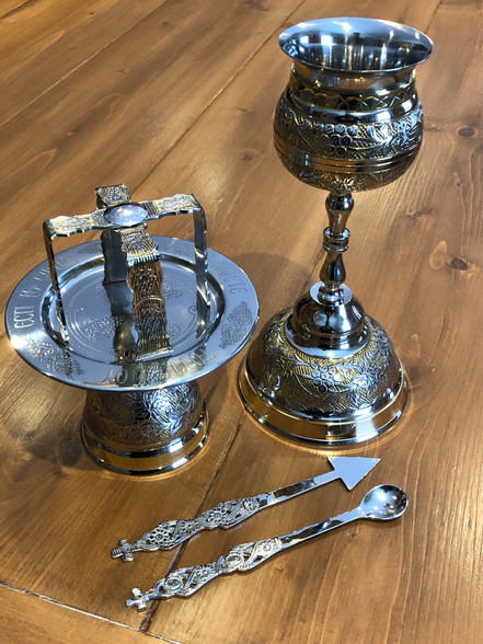 Loading... Please wait...High quality Two Colored Brass Chalice Set. A very beautiful set as well as very practical for use in the Divine Liturgy.