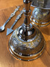 It consists of five pieces: Chalice, Lance, Paten, Spoon and Star. Patten is made of Stainless Steel. All other parts are made of two-colored Brass.