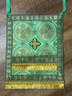 Green brocade nabedrinik with gold/green trim. Green ribbon/strap that goes over the shoulder.
