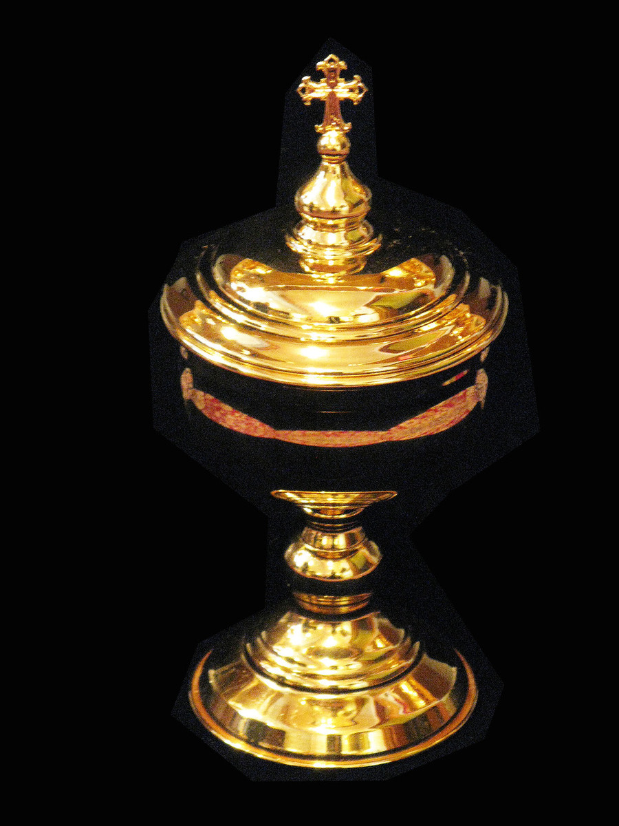 Used for Panagia service, or to hold antidoron or commemoration particles at proskomedia. Gold plated. Dimensions: 10" tall x 4.5" wide.