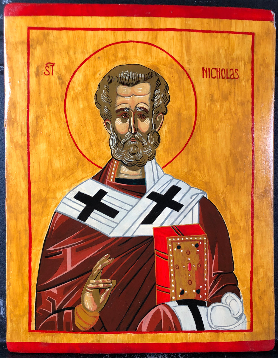 Hand-painted icon of St Nicholas of Myra.